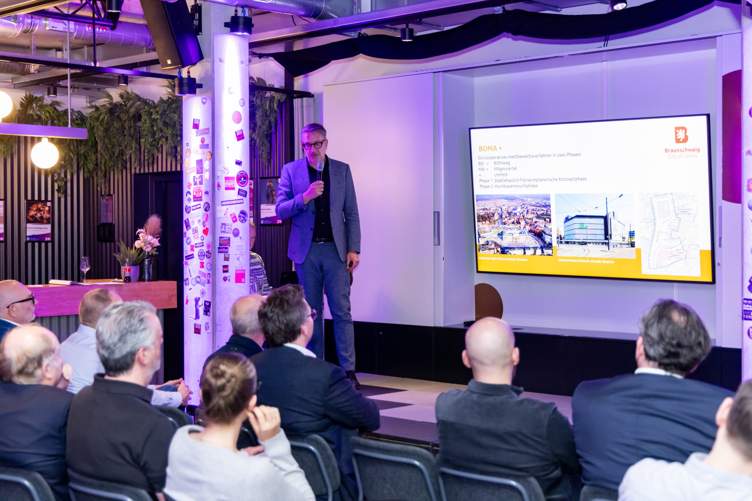 Nach der Begrüßung und den Regularien erhielten die Mitglieder einen umfassenden Einblick in zentrale Projekte, die die Innenstadt in den kommenden Jahren prägen werden. Vorgestellt wurden unter anderem der aktuelle Stand des kooperativen Wettbewerbsverfahrens BOMA+, das geplante Haus der Musik, die Neugestaltung des Hagenmarktes sowie die Entwicklung der Stiftshöfe. Die vorgestellten Projekte zeigen, wie stark sich die Braunschweiger Innenstadt derzeit weiterentwickelt – mit neuen Impulsen für Aufenthaltsqualität, Kultur, Frequenz und Nutzungsmischung.